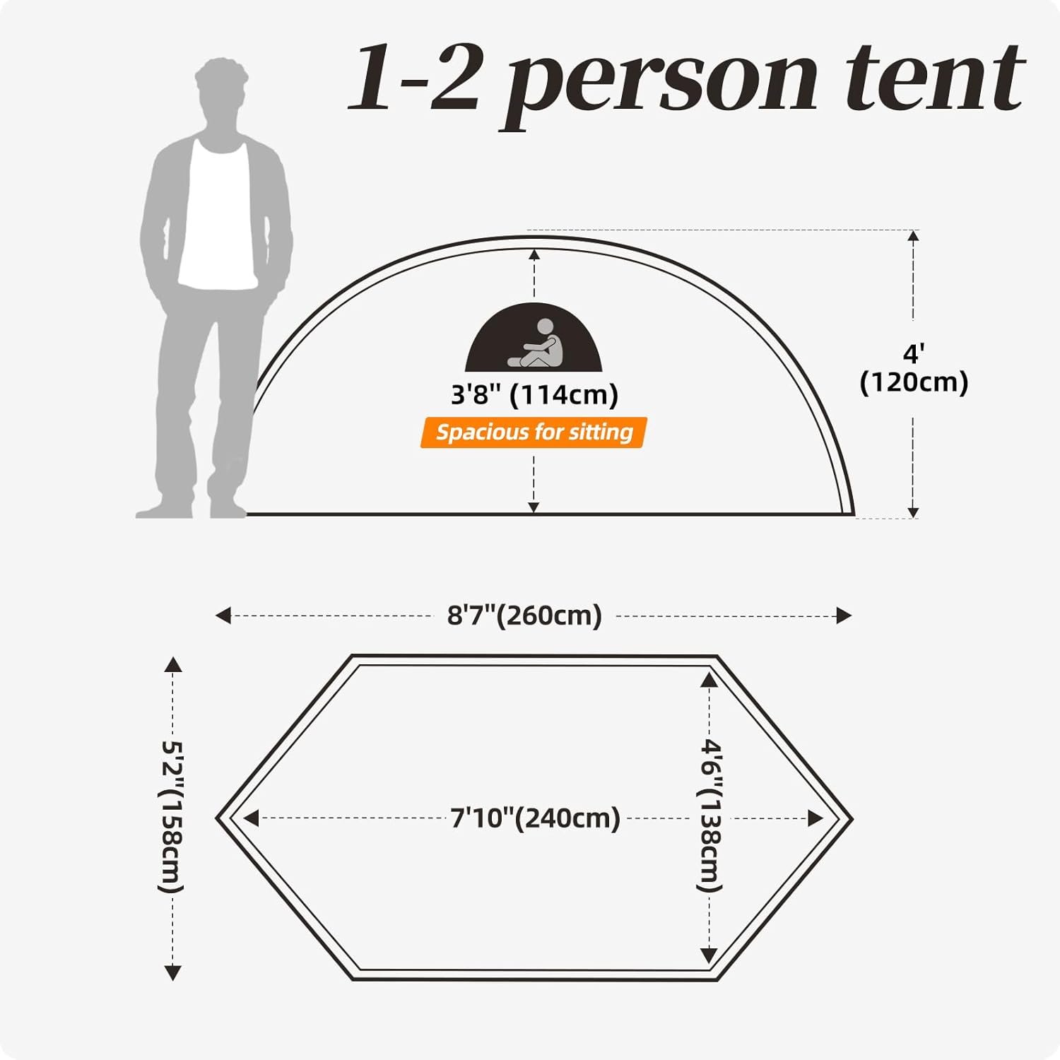 - Suitable for various activities: Unique design for 1 person backpacking tent tailored made for solo backpacking, hiking, trekking, motor camping, hunting and fishing.
